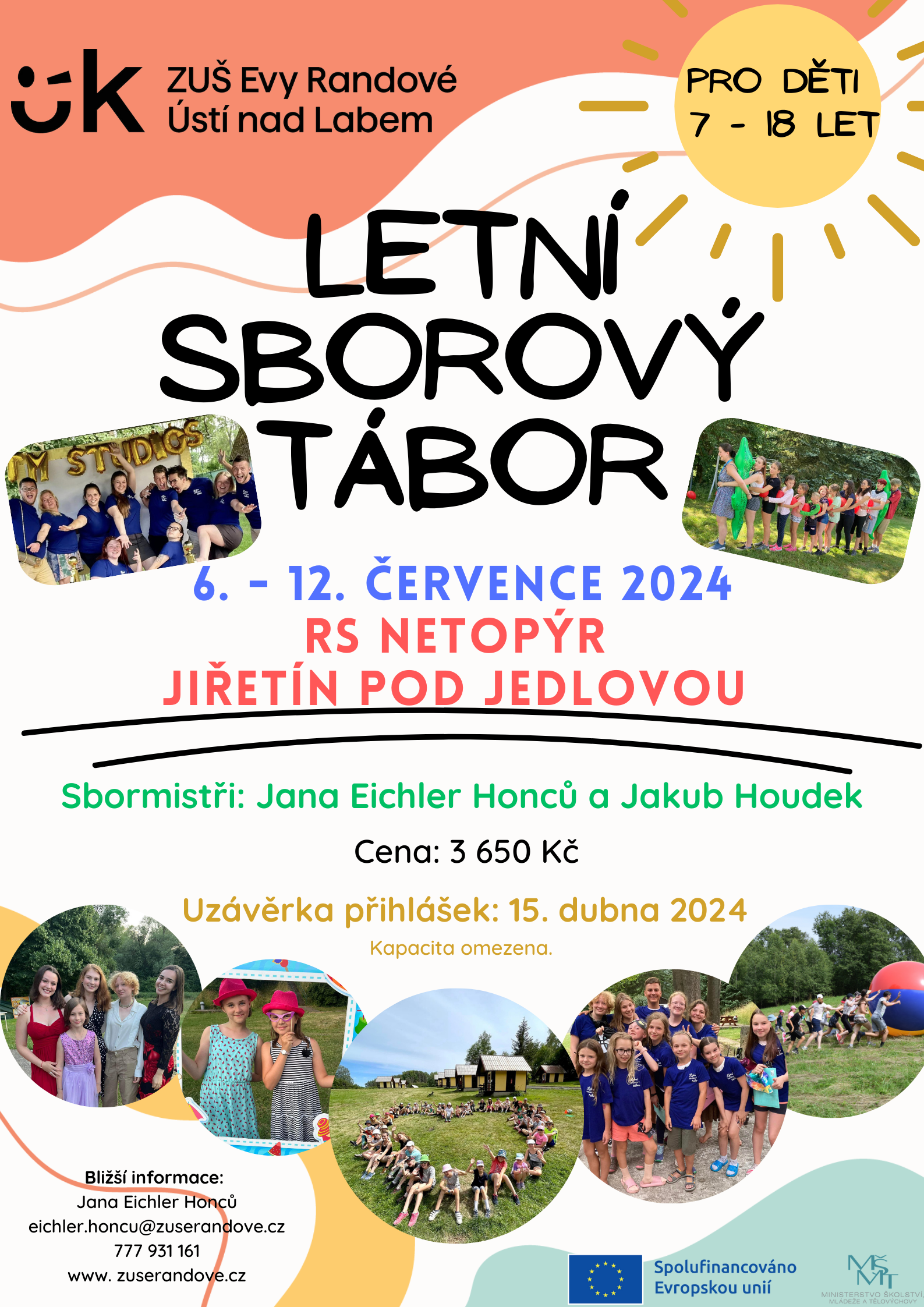 Letos bude tábor spolufinancován z projektu EU, OP JAK “S Amosem inovativně”. Proto si účastníci hradí pouze ubytování a stravu v areálu RS Netopýr v Jiřetíně pod Jedlovou.